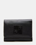 The HARBER wallet is a sophisticated bifold wallet featuring a sleek logo design on the front. Its multiple card slots provide organization and the button snap closure keeps your belongings secure.Â