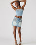 Expertly crafted for style and comfort. the ERAS denim skirt is a must-have in every fashionista's wardrobe. This denim mini skirt features a button and zipper closure for a secure fit. as well as functional front and back pockets to keep your essentials close. With stunning rhinestone embellishments. elevate your casual look with a touch of sparkle.