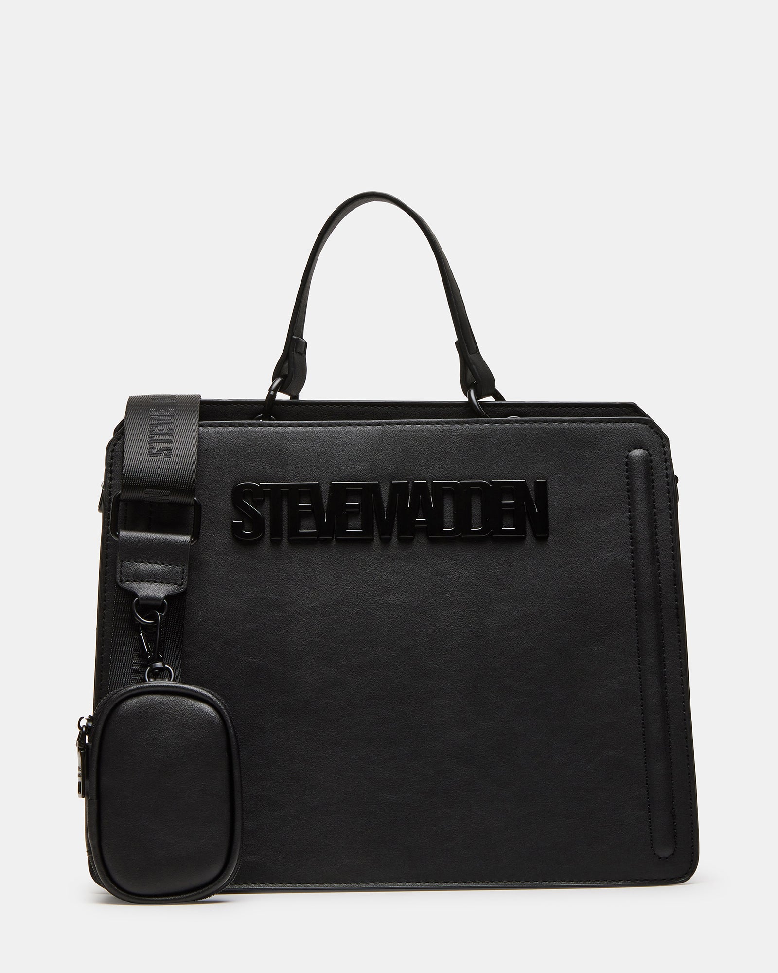 Clever interior organization and a matching modular zip pouch give the EVELYN large bag extra storage. Reinforced edges. structured side gussets. and custom hardware add to the substantial look and feel of this top-handle design.