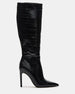 The NITRO BLACK EEL WIDE CALF is a sophisticated and versatile addition to any wardrobe. This pointed-toe heeled stiletto boot is designed for both style and comfort. ensuring a confident stride. With a knee-high height. it adds a touch of elegance to any outfit.